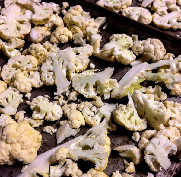 Alternate cauliflower roasting tip: Roast cauliflower floret slices in a 400F oven tossed with salt, pepper, and a drizzle of olive oil to coat lightly. Stir/flip with a spatula after about 15-20 minutes. Take them out when they are a little browned and just tender. Thirty minutes should be about right. As with most things, when you smell it, it’s about done.
