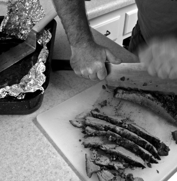 Our journey to barbecue freedom and choice began with a brisket as well. Here’s a quick version of the story. We ran into our friend Adele Franzblau at the meat counter in Publix a few years back. Adele, who admits to a high level of uneasiness in the kitchen, was picking out a brisket when she told us about her Texas Aunt Pat’s smoky beef brisket recipe that she makes all the time. It’s the most requested family recipe for birthday dinners and special occasions. She just sprinkles a bottle of smoke, some Worcestershire sauce, and some garlic salt all over the brisket and cooks it in a low oven all day or over night. Works every time.
