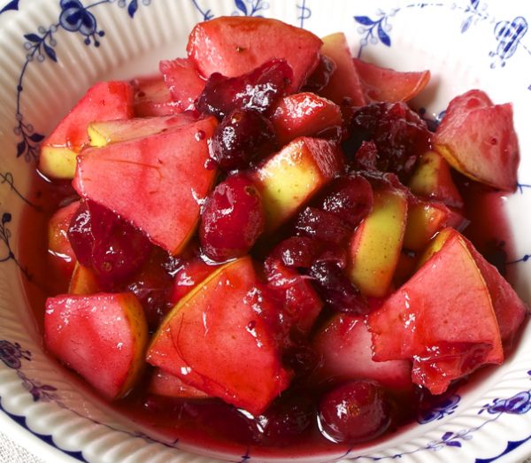 Our favorite Cheater Chef cranberry dish puts the cranberry sauce into a gorgeous ruby-tinged fresh fruit salad loaded with pineapple, oranges, pears, apples, and/or grapes. Add spices like cinnamon and ginger.