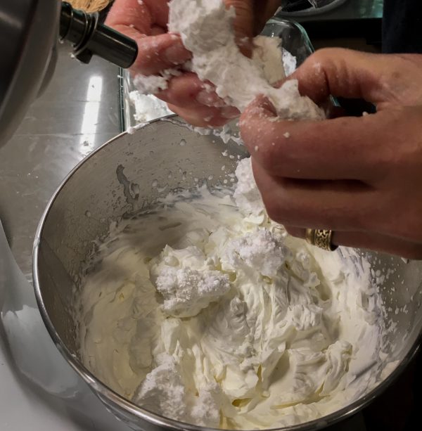 I know we’re all trained to think they have to be manufactured by Kraft, but they don’t! I promise this updated fruit fluff will simply BLOW YOU AWAY. It’s definitely dessert, not a salad. In fact, a very showy dessert. Serve the fluff in a mountain on a platter with torn chunks of Angel food cake or neat squares of Buttermilk Pound Cake Squares. A big platter in the middle of the table will allow everyone to get just a bit more.