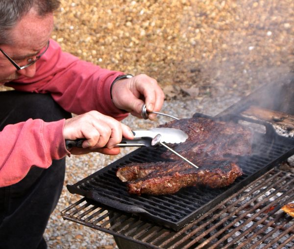 3. Place the steak on the grill and don’t leave your post. Turn it over only when the steak easily lifts off the grate. If it sticks, leave it be. If your heat is so high you risk burning the meat, move the coals aside with your dedicated for charcoal long restaurant supply place metal tongs. Allow this thick cut to cook on one side at least seven to ten minutes. Flip the steak and enjoy that beer you have whenever you’re grilling anything.