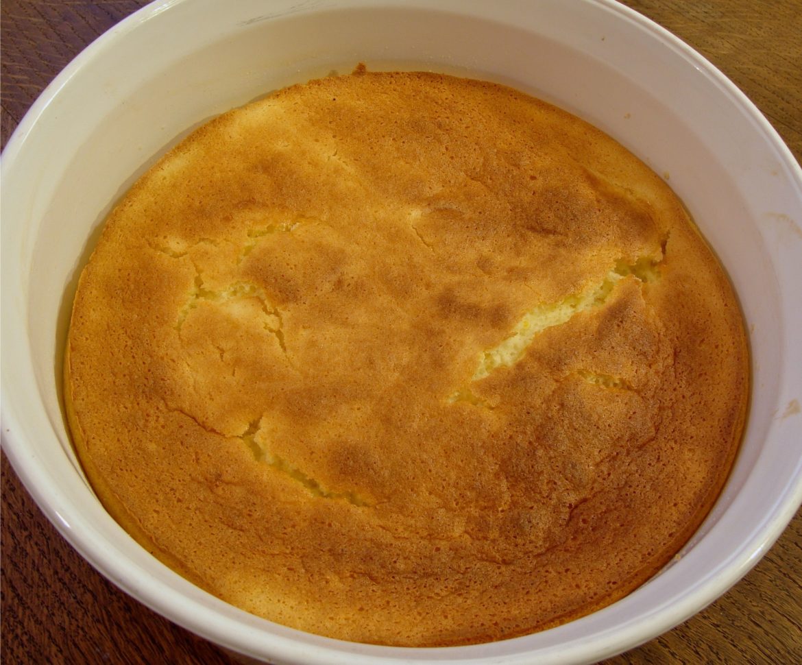 Pudding cake is sort of a miracle dessert that magically separates into layers of bottom custard with a cakey top. I think of it as a hybrid souffle, cake, and pudding. Yes, you do have to whip egg whites, a step that seems to be a deal breaker for lots of home cooks, but just do it! It’s not as delicate as a classic souffle and you can make it ahead. No need to serve it right out of the oven. In fact, I prefer it room temperature.