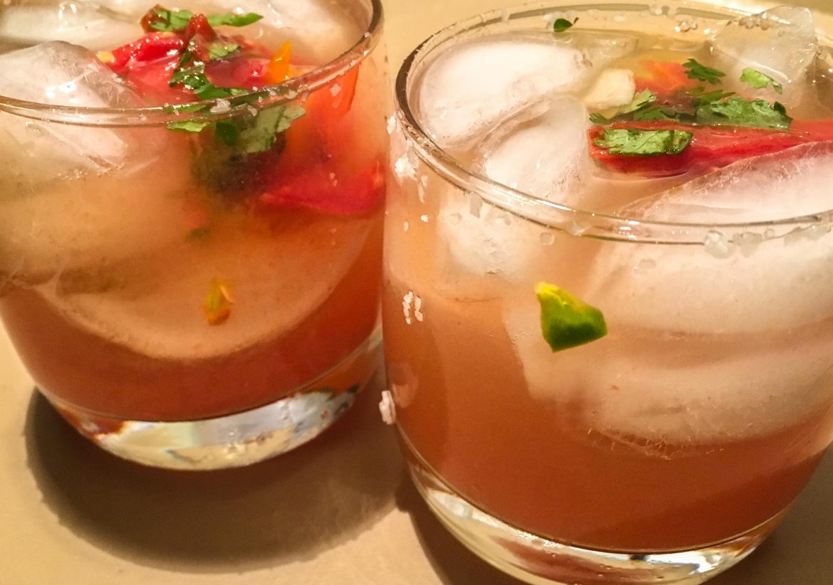 If you’re using tequila (and your fresh tomato liquid deserves a 100 percent agave brand), moisten a short glass with a lime wedge and rim with coarse salt. Add ice and tequila and top with the spicy tomato liquid. Or, forget the salt rim and use vodka for a pico mary. No need to add crazy bloody mary-gone-wild garnishes like bacon, shrimp, pickled okra, tater tots or a giant Nashville Hot Chicken wing. These cartoonish props simply clutter the purity of the cocktail. In fact, do your best to resist completely any addition because those bright little tomato and cilantro bits are the perfect adornment.