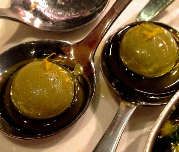 We tried a plate of his mind blowing Ferran Adria-style liquid olives. Wow. They explode and dissolve in your mouth in a magical way.
